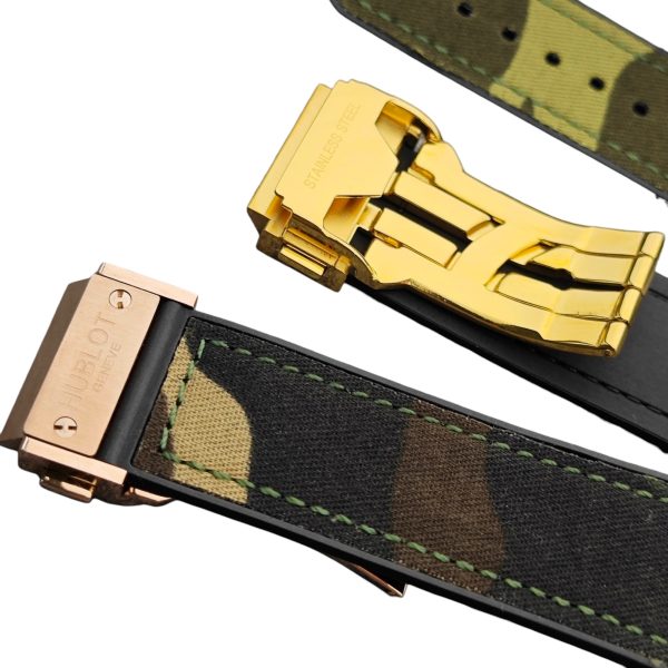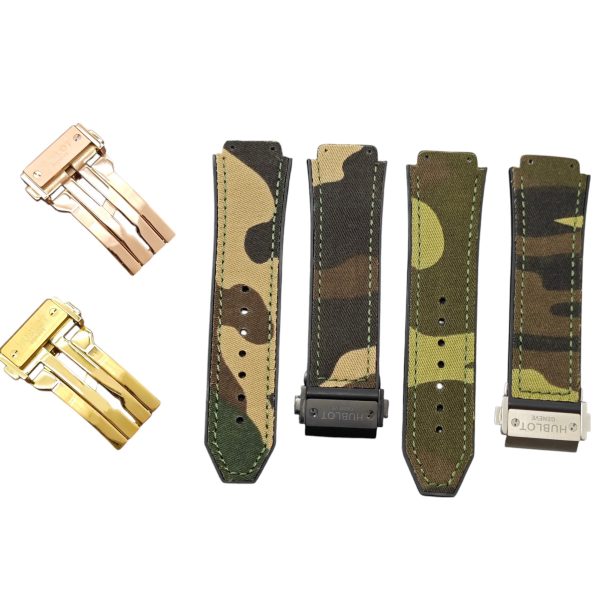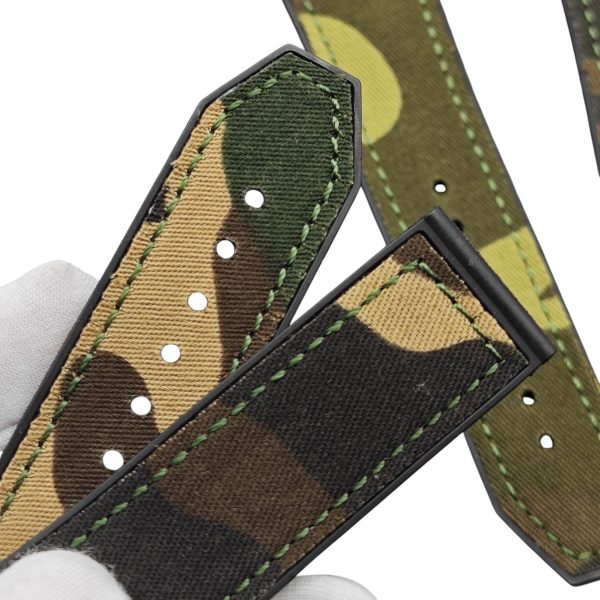 Elevate your Hublot Big Bang or Classic Fusion watch with this stylish and durable 25x19mm Canvas Fabric Camo Strap. Crafted with premium rubber and canvas fabric, the strap combines rugged aesthetics with all-day comfort. Perfect for those who demand both functionality and style, it seamlessly integrates with your 45mm Hublot timepiece.