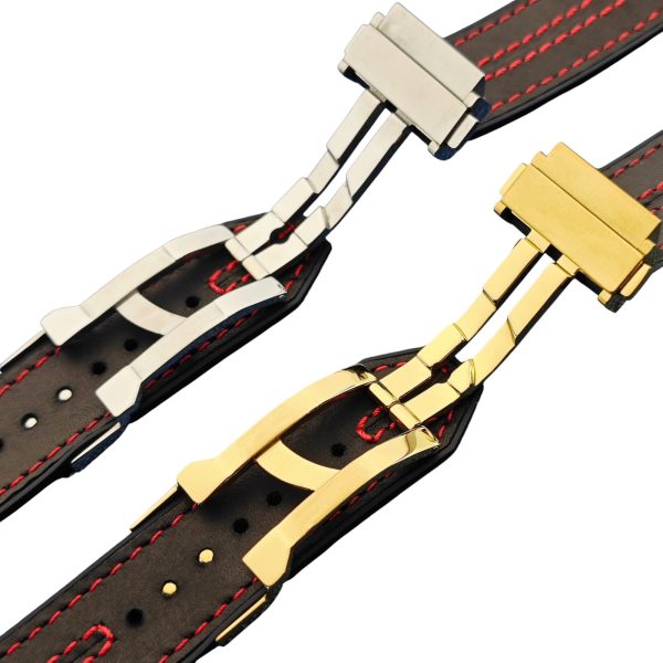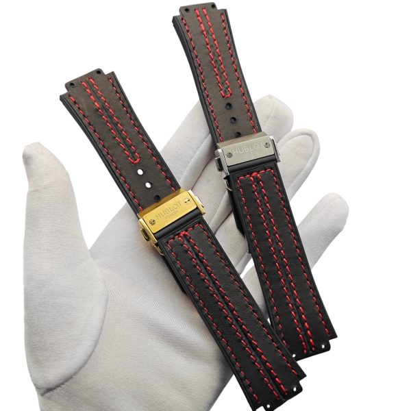 Elevate your Hublot Big Bang Series watch with our Aftermarket Leather Band, expertly crafted to enhance both style and comfort. Made from genuine leather combined with silicone rubber for durability, this band offers a perfect blend of luxury and resilience. Designed specifically for the 25x17mm case size, it features a sleek folding buckle for easy wear and secure fit.