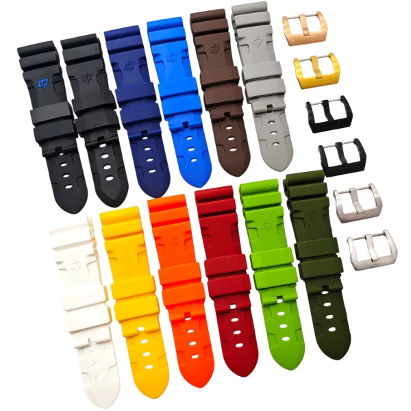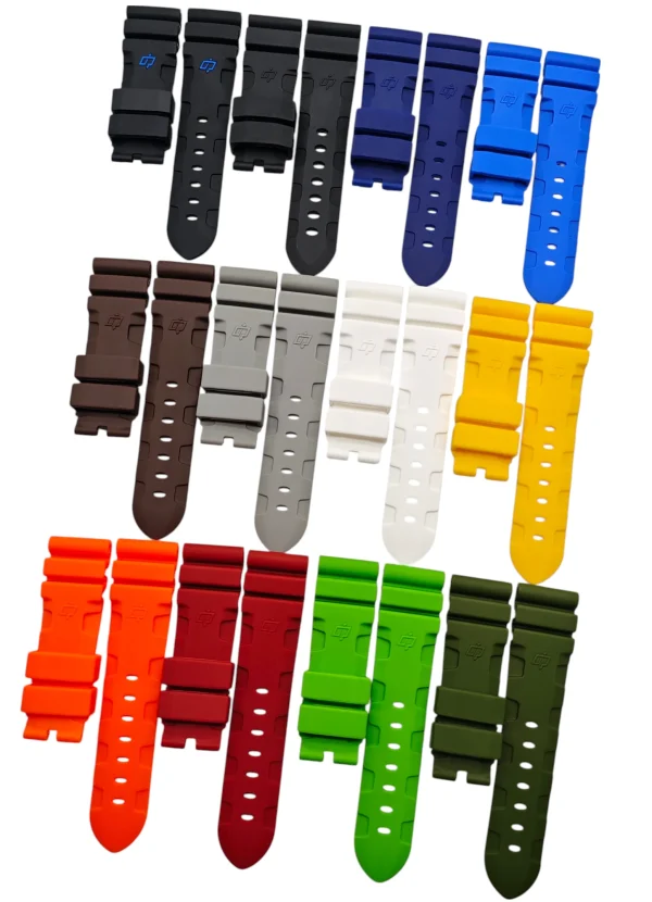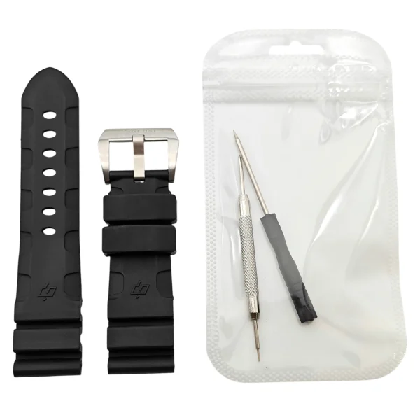 Upgrade your Panerai Luminor Submersible PAM441 or PAM111 with our Aftermarket Rubber Band. Designed for comfort and durability, this band is available in widths of 22mm, 24mm, and 26mm.