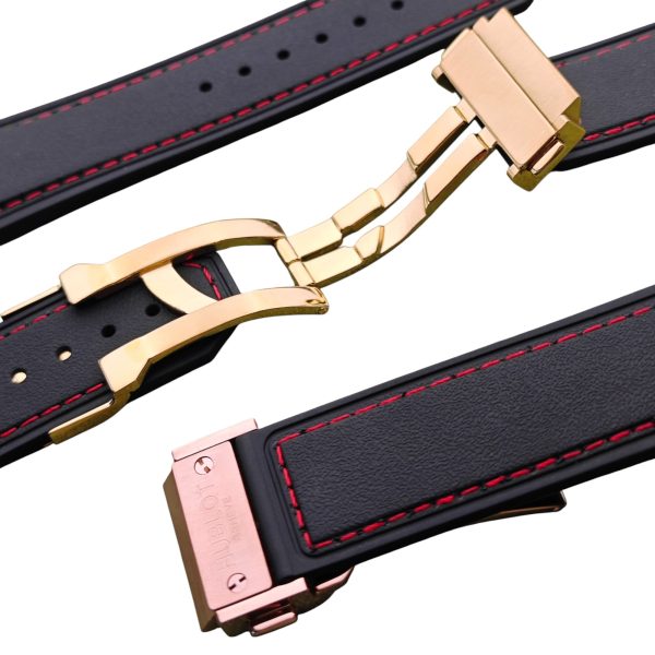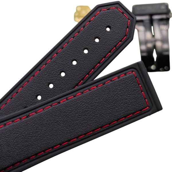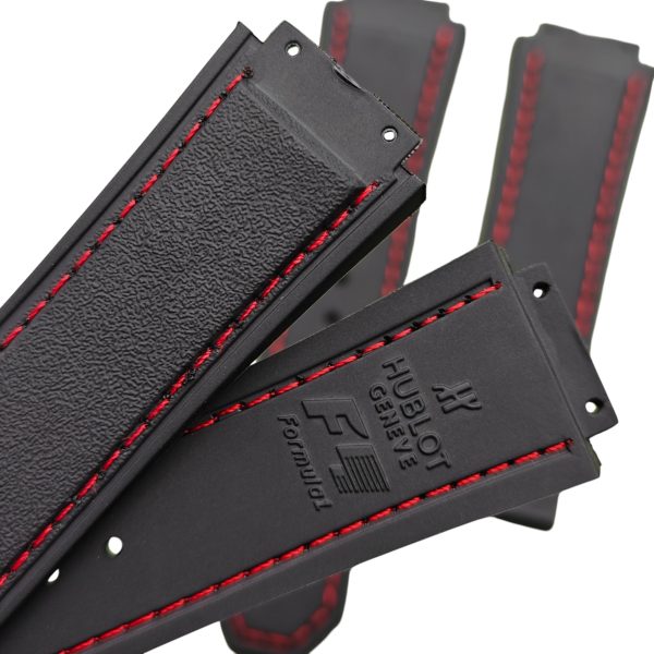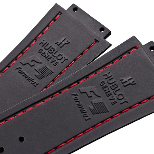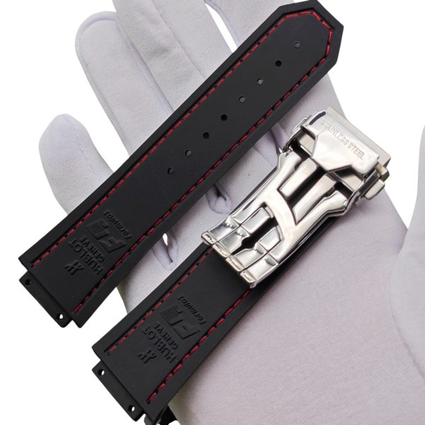 Black Rubber Strap for Hublot King Power Formula 1. Crafted from high-quality silicone rubber, this strap offers both durability and comfort, making it the perfect accessory for your Hublot watch. Its sleek design complements the sporty aesthetic of the King Power Formula 1 series.