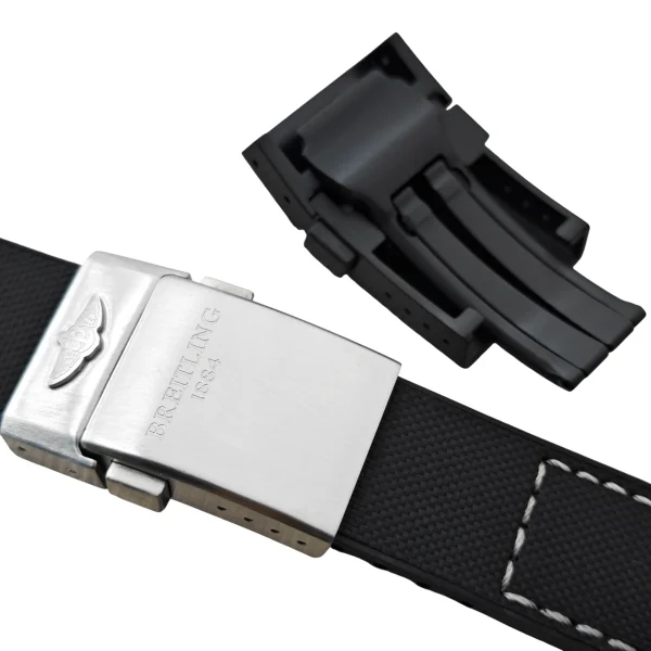 Designed to complement iconic Breitling models like the Avenger, Navitimer, and Superocean. This strap skillfully combines the rugged durability of premium canvas with the sleek comfort of silicone rubber, offering exceptional style and resilience. Whether you’re navigating the depths or soaring above the clouds, this strap ensures a secure and sophisticated fit, tailored for every adventure.