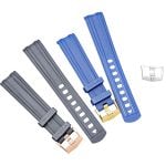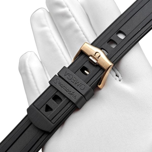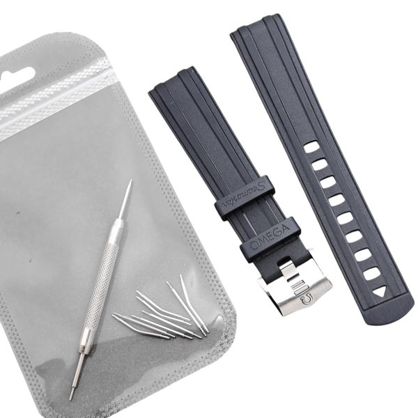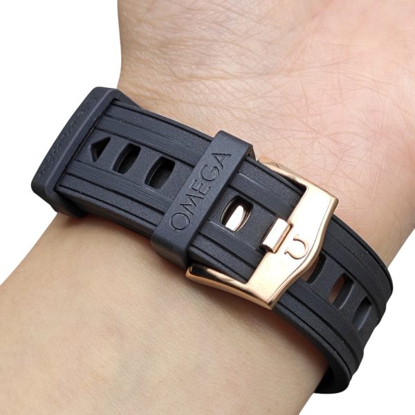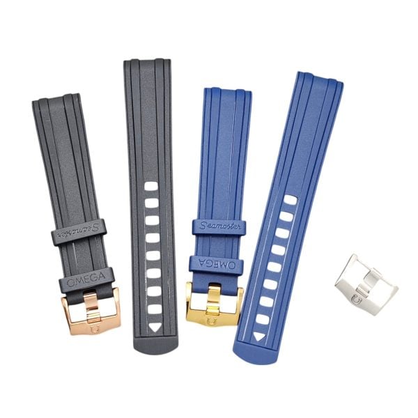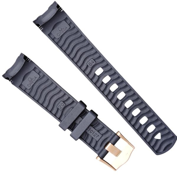 Elevate your Omega Seamaster 300 Series Planet Ocean 600 with this expertly crafted curved rubber strap. Designed for a seamless fit and maximum comfort, finished with a stylish buckle available in silver, black, gold, and rose gold, ensuring a perfect match for your timepiece.