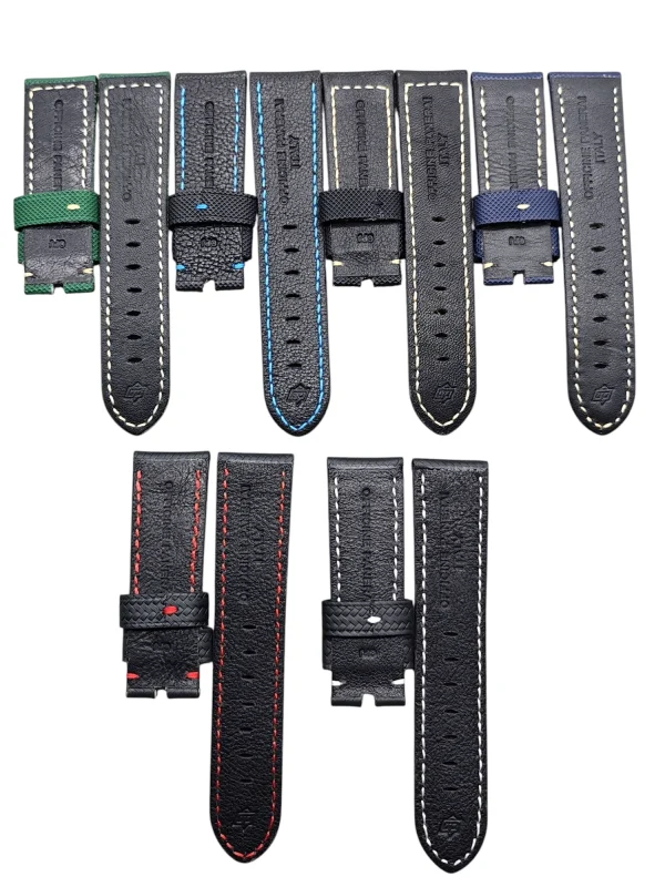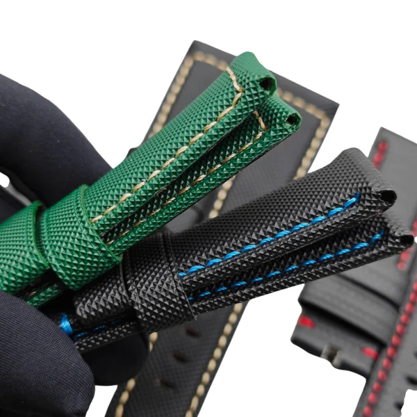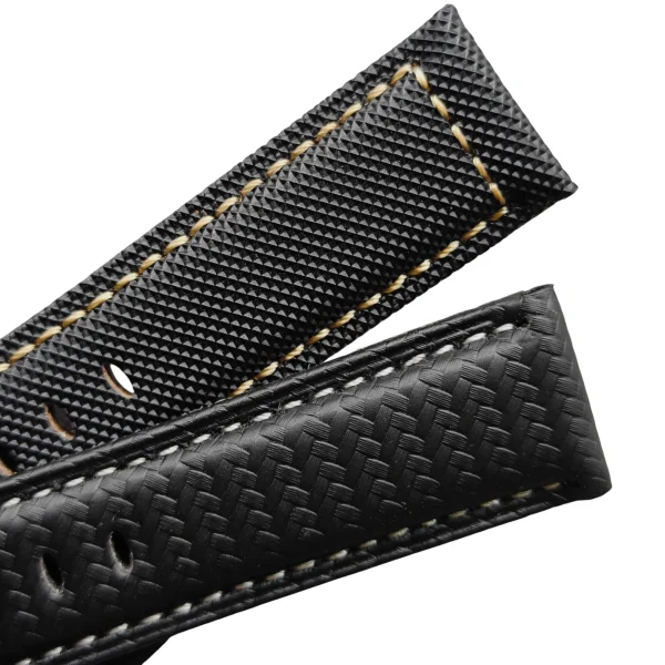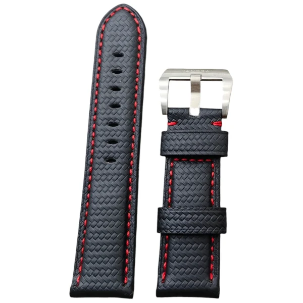 Elevate your Panerai Luminor Submersible PAM386/441 with our Fabric Carbon Fiber & Leather Strap. Designed for a perfect fit at 24mm width and 125+75mm length, this strap blends the sleek aesthetics of carbon fiber fabric with the luxurious feel of leather.