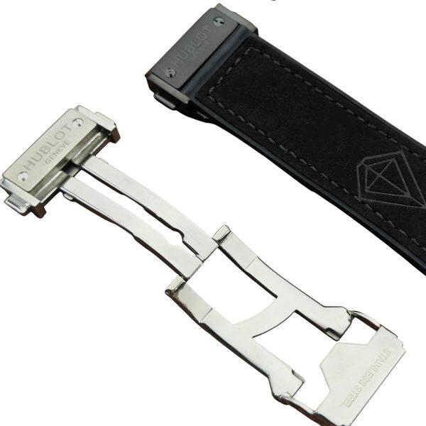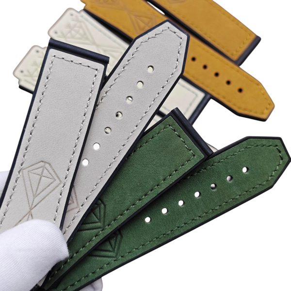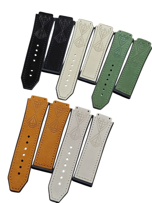 Nubuck Leather Strap for Hublot King Power Series. This premium strap combines the softness of nubuck leather with the durability of rubber, providing a luxurious feel and enhanced comfort. Designed specifically for the Hublot King Power watches, it adds a sophisticated touch to your timepiece.