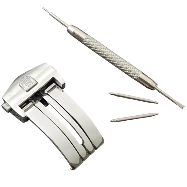 Enhance the functionality of your Tag Heuer leather and rubber straps with our Replacement Folding Buckle Clasp. Designed for durability and ease of use, this clasp fits both 18mm and 20mm strap widths, providing a secure closure for your timepiece.
