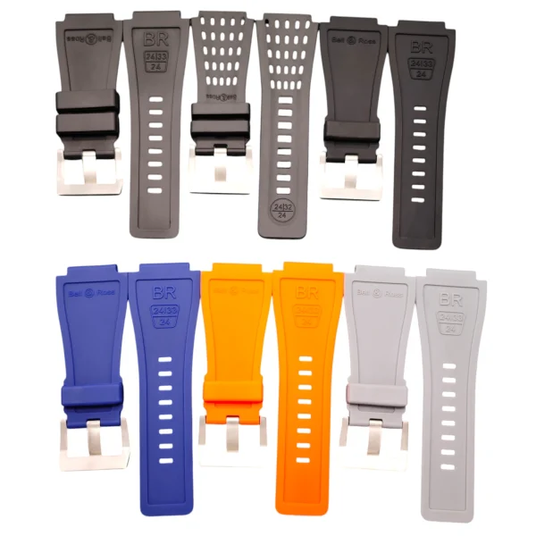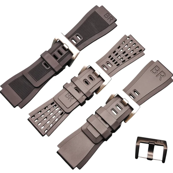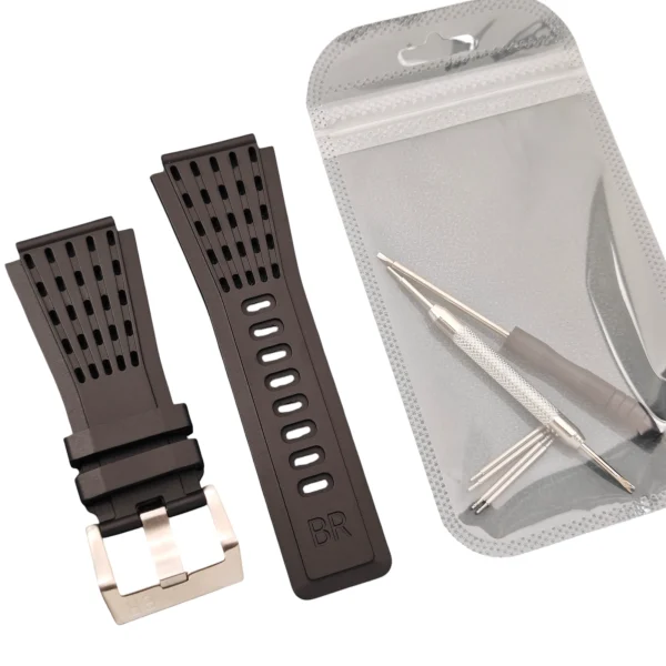 Upgrade your Bell & Ross BR01 and BR03 watches with our Replacement Rubber Band. Crafted for durability and comfort, this strap features a width of 34mm at the top and 24mm at the bottom.