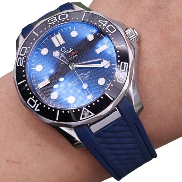 Enhance your Omega Seamaster Aqua Terra AT150 with this premium rubber band. Crafted for comfort and resilience, this strap is designed to perfectly fit the Aqua Terra series.